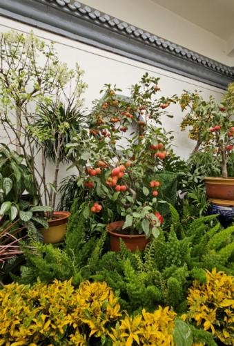值得一提的是,公园唐花坞“春华秋实”花卉精品展和“四季飘香”秋季兰花精品展都在中秋节当天开幕。唐花坞“春华秋实”花卉精品展,以“春华”和“秋实”为主题,西厅展出公园利用花期控制技术培育的碧桃、榆叶梅、丁香、连翘等春季开花植物,与江南烟雨背景墙交相呼应,使游客如临“水国楼台晚,春郊烟雨收”的春景之中。小院里巨型的观赏南瓜、冬瓜,以及东厅摆放的苹果、观果海棠、山楂果,红艳艳挂在枝头,累累硕果,烘托出喜庆的节日氛围。