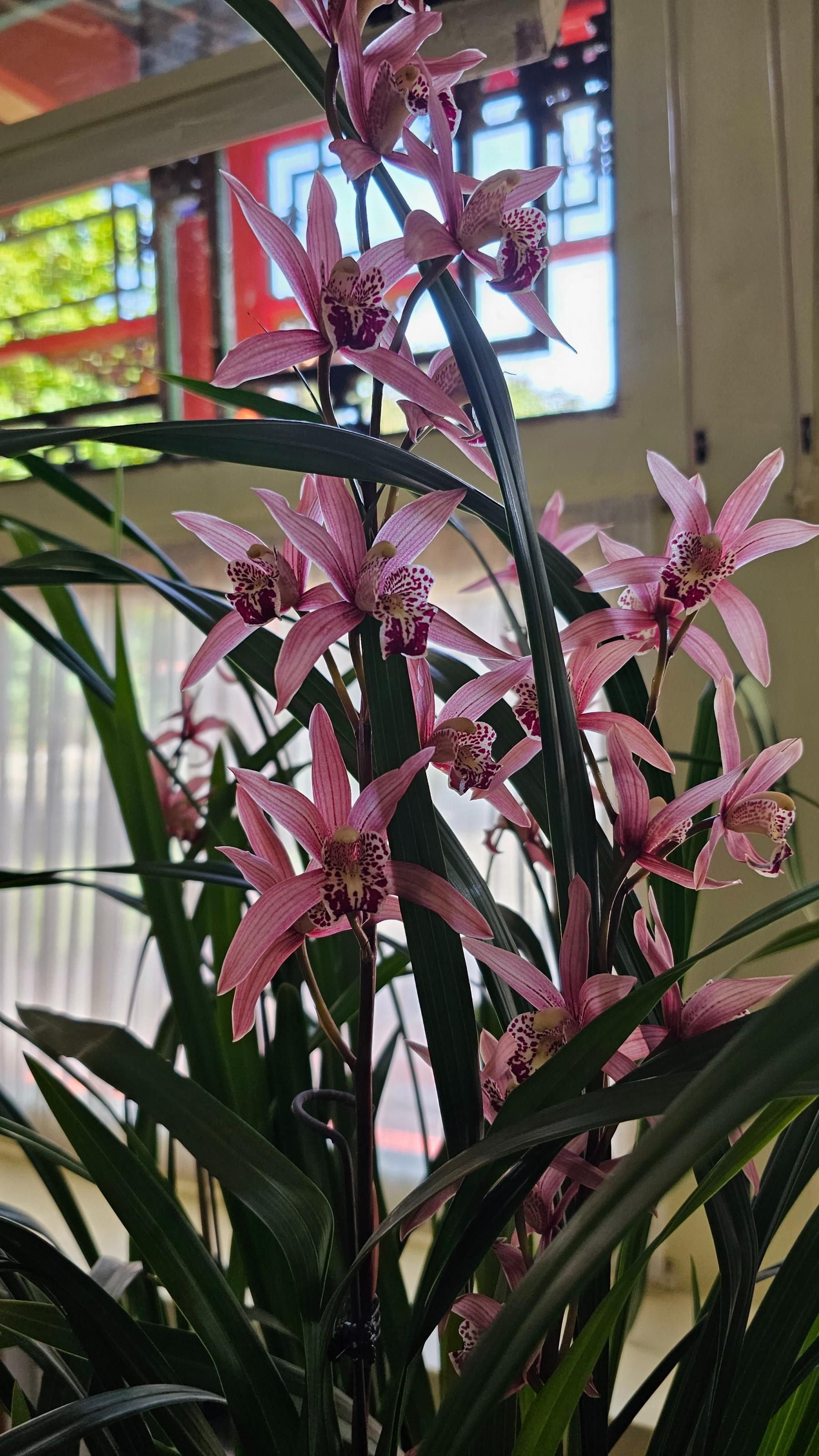 在古朴典雅的蕙芳园,陆续展出的千佛金顶、四季达摩、梨山狮王、凤舞九天等建兰精品50种、近百盆,高贵典雅,花香幽远,为市民游客送出一份清新高雅的花卉盛宴。