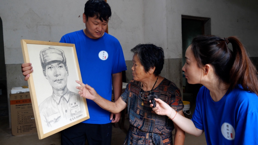 靠着与烈士同龄的老人家慢慢描述