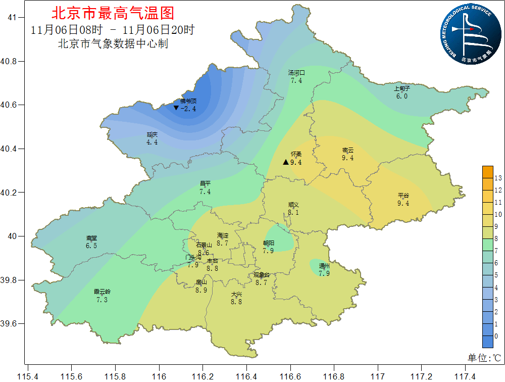 6日08时至6日20时,南郊观象台最高气温为8.7℃(6日15:57)。