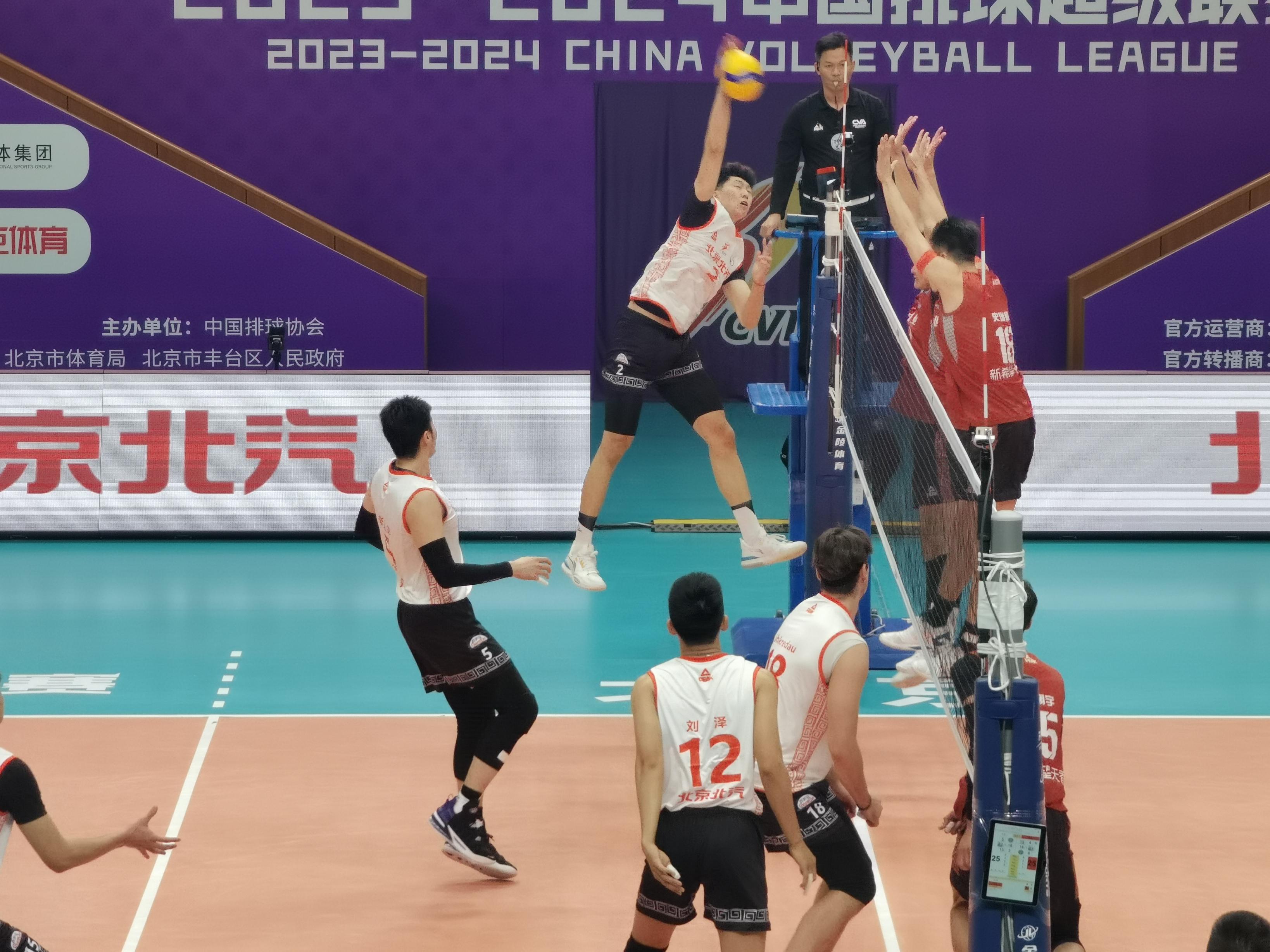 目前,北汽男排以5胜1负继续排在A组积分榜第一。