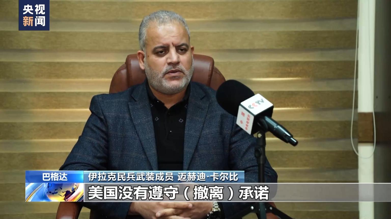 伊拉克民兵武装成员 迈赫迪·卡尔比:伊拉克“伊斯兰抵抗组织”认为美国没有遵守(撤离)承诺,我们不接受美国没有诚意的撤离,因此“伊斯兰抵抗组织”将继续采取军事行动,直到美军撤离伊拉克。伊拉克“伊斯兰抵抗组织”将在未来几天(针对美军空袭)进行回应。