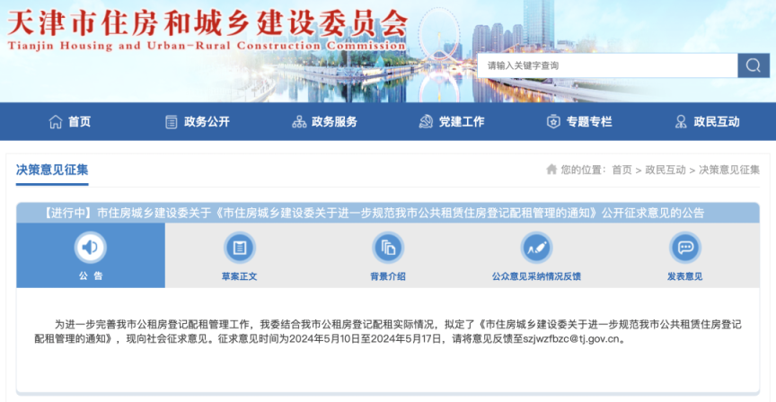 ➢➢➢征求意见时间为2024年5月10日至2024年5月17日,请将意见反馈至szjwzfbzc@tj.gov.cn。