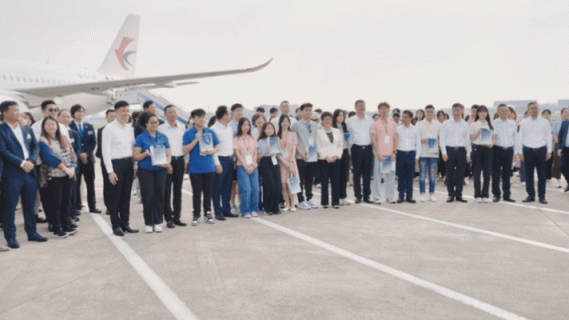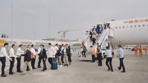 激动的不仅仅是乘客们,这也是C919首次执飞地区商业航线,为了这一次飞行,东航选派了C919商业首航时的部分飞行员、乘务员执行本次包机航班。
