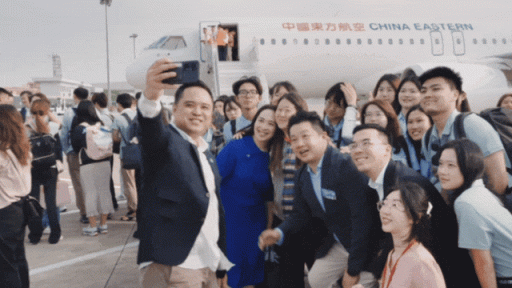 昨天,虹桥机场的水门仪式又一次为C919举行,这一次C919带回了一群特殊的“客人们”——由沪港社团总会、沪港青年会组织的2024年“沪港同心”香港青年学生们。