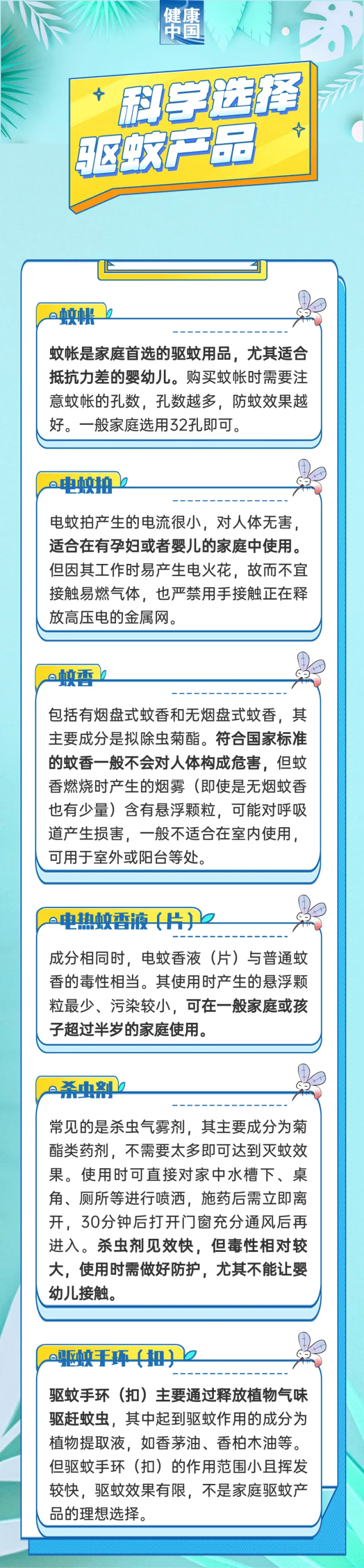 市场上流通的驱蚊虫产品种类很多,比如电蚊拍、电热蚊香液、蚊香、杀虫剂、驱蚊手环等。它们的作用原理不同,产品质量不一,效果也是参差不齐。消费者可根据不同产品的特点,按需选择安全有效的驱蚊用品。