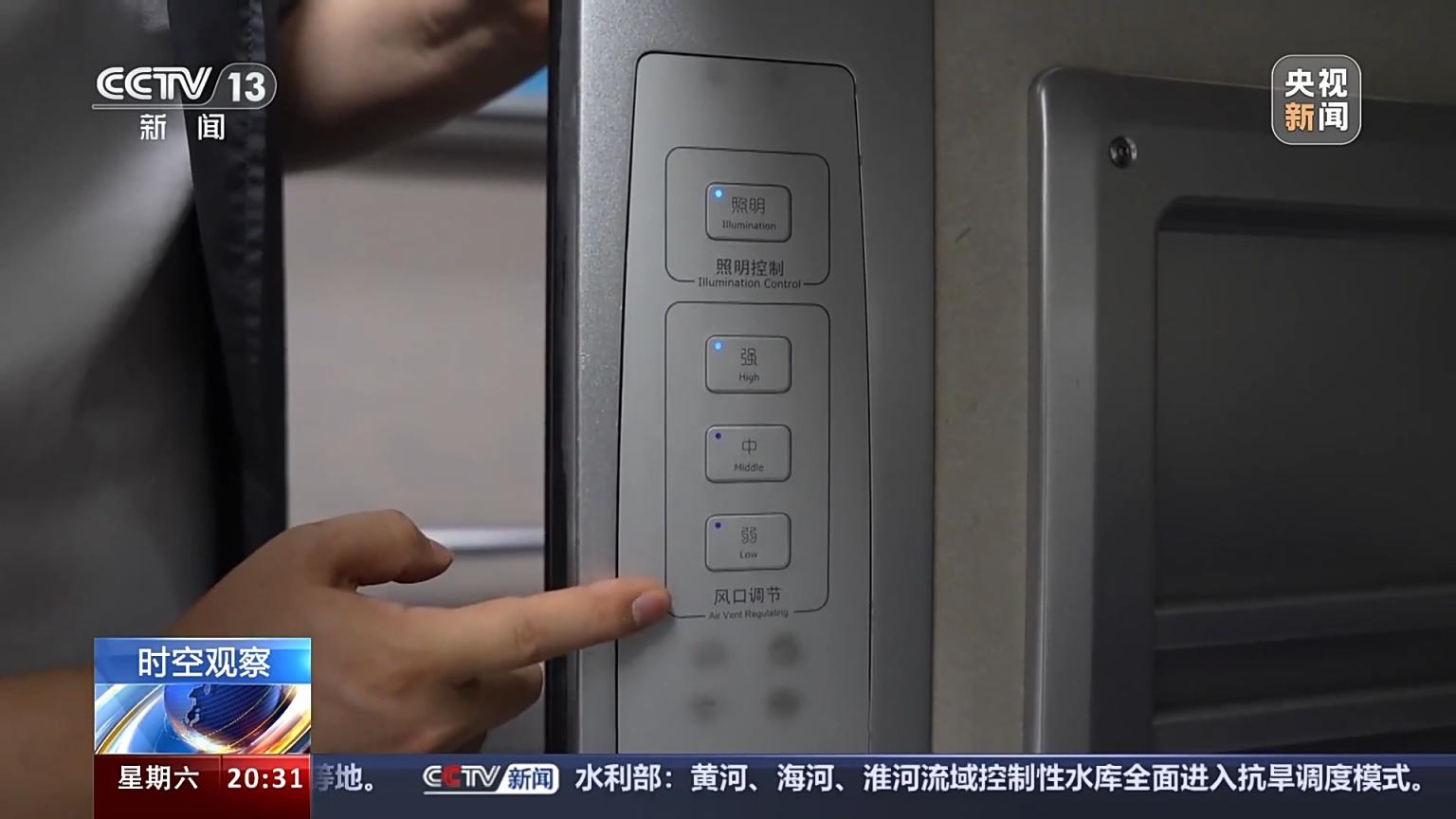 总台央视记者 王善涛:2号包间里面是上下两个铺位,共有四个铺位。在靠近门的位置有一个操作面板,可以控制照明以及调节风量大小。铺位的下面摆放着四双一次性拖鞋,这些拖鞋都以不同的颜色区别开,避免旅客在使用中混用。小桌板上还放着四个洗漱包。这是免费提供给软卧列车乘客的。