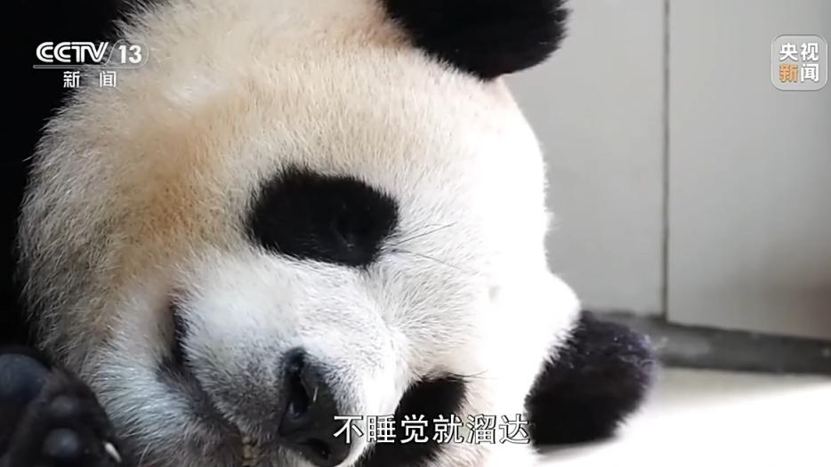 “福宝”饲养员徐翔:早晨来了之后我们给它加竹子,加好竹子吃一顿,自己到运动场溜达溜达,玩一玩,看一看,熟悉熟悉。下午想睡觉就睡觉,不睡觉就溜达,就是一种放松的、自由的感觉。回来到现在体重可能微微长了那么一点,长的不多,它体重保持还可以。