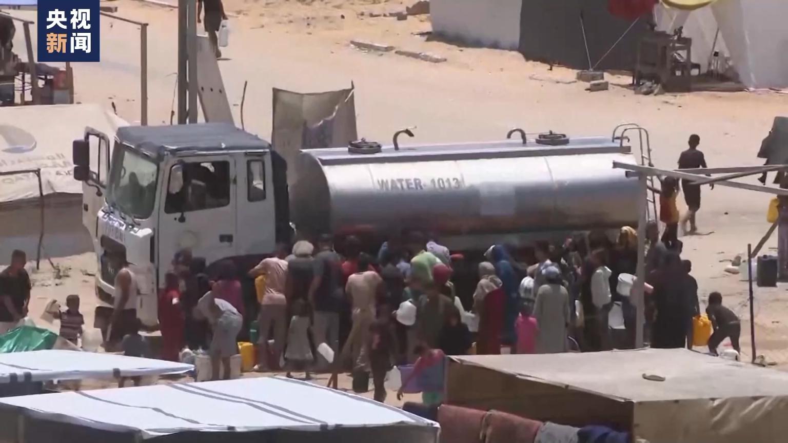 在加沙地带南部的汗尤尼斯,现在有数万人生活在临时搭建的简易帐篷里。在炎炎烈日的炙烤下,他们每天都要排队等送水车来取水。