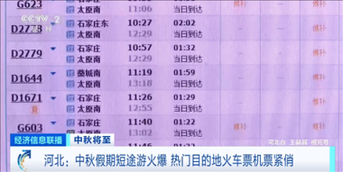 河北某旅行社销售经理 张博:从目前情况来看,一些热门目的地,比如郑州、太原、秦皇岛的火车票好多都已经售罄了;机票方面也是,例如从石家庄出发去往大连、桂林、上海的机票非常紧俏。