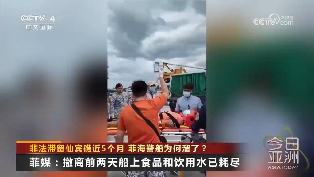 9月14日,菲律宾海警9701号船撤离中国仙宾礁潟湖,并于15日回到其位于巴拉望岛的母港。菲媒发布视频称,菲海警9701号船回到巴拉望省的港口后,4名菲律宾海岸警卫队人员被担架抬下船后送医。