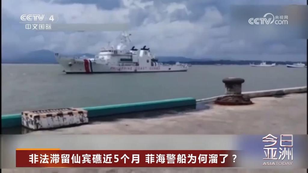 9月15日,非法滞留中国仙宾礁近五个月的菲律宾海警9701号船回到其位于巴拉望岛的母港。中国海警局表示,将依法在中国管辖海域持续开展维权执法活动,坚决维护国家领土主权和海洋权益。