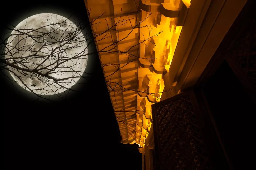选择时机。月亮刚刚升起时,有地面的参照物,月亮会显得特别大。广阔的天空没有参照物,月亮就显得小了。