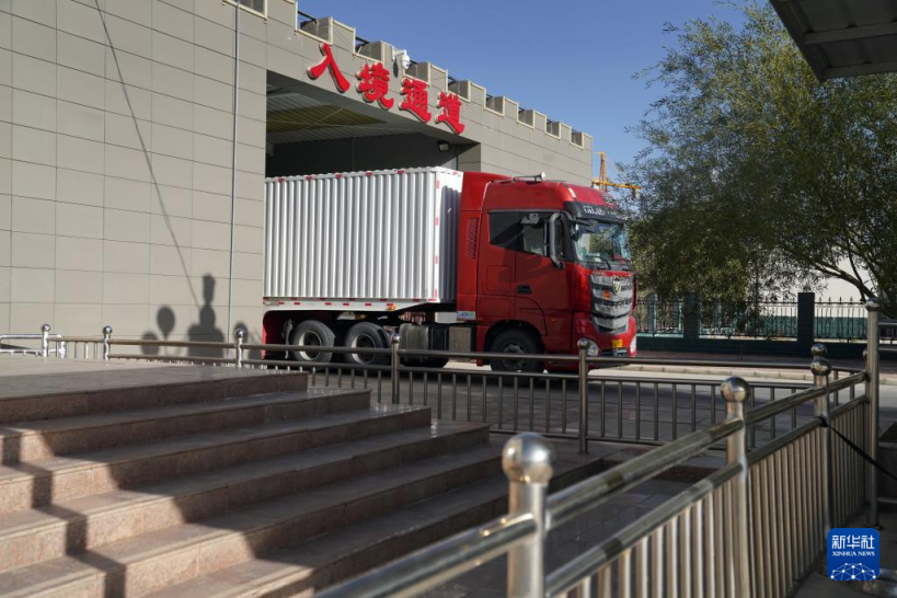 9月20日,一辆货车从红其拉甫口岸入境通道驶过。新华社记者 赵宇思 摄