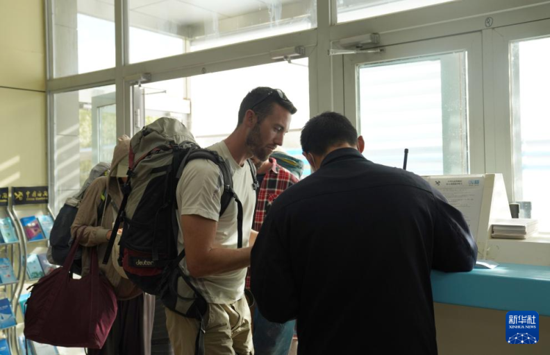 9月20日,新疆出入境边防检查总站红其拉甫边检站民警协助一位瑞士籍入境旅客。新华社记者 赵宇思 摄