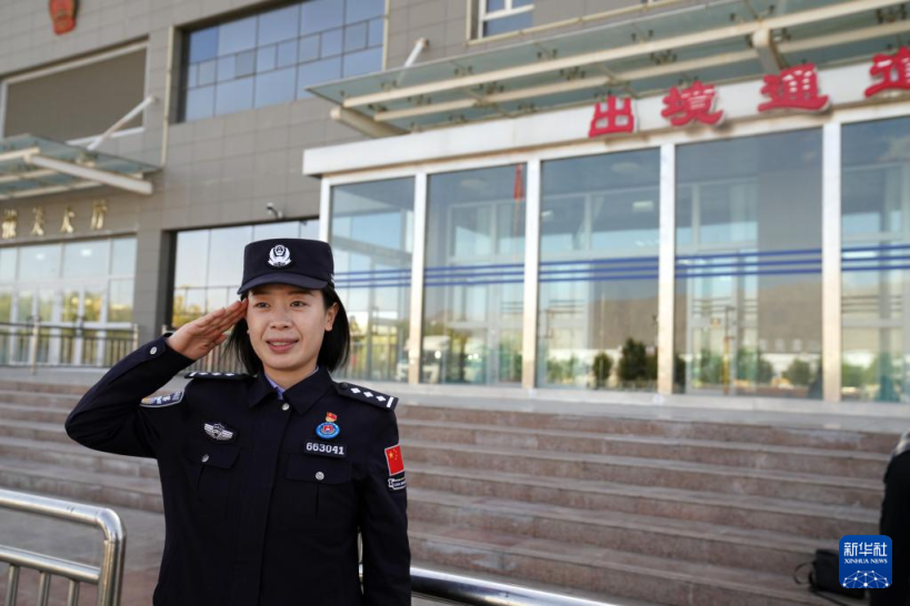9月20日,新疆出入境边防检查总站红其拉甫边检站民警张瑾在口岸执勤。新华社记者 赵宇思 摄