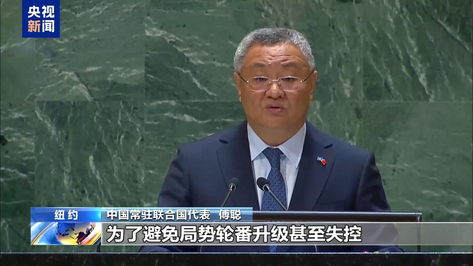 中国常驻联合国代表 傅聪:为了避免局势轮番升级甚至失控,各方都要力行克制,避免采取煽动性言论和挑衅性行动,强权不能代替正义,巴勒斯坦独立建国的夙愿不能再被回避,巴勒斯坦人民遭受的历史不公不能再被无视,全面停火刻不容缓,“两国方案”是根本出路。