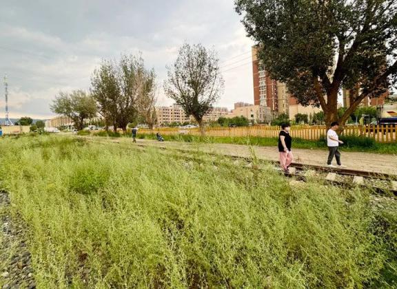 呼和浩特市新城区一居民区附近生长的大片蒿草。新华社记者 王靖 摄
