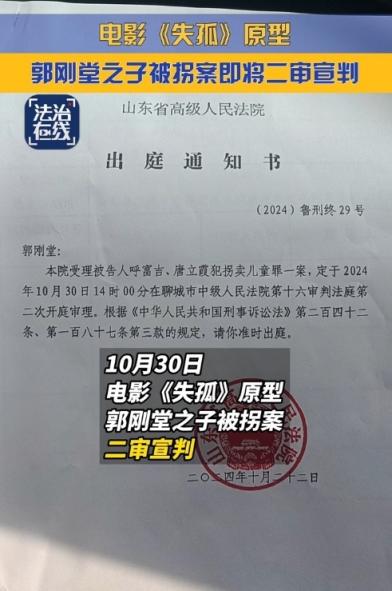 今天(10月30日)14时,备受关注的郭刚堂之子被拐案将在山东省聊城市中级人民法院二审二次开庭。本案合议庭由山东省高级人民法院将组成,上诉人为原审两名被告人呼富吉、唐立霞,山东省人民检察院派员出庭,郭刚堂等被害人家属将到庭参加诉讼。