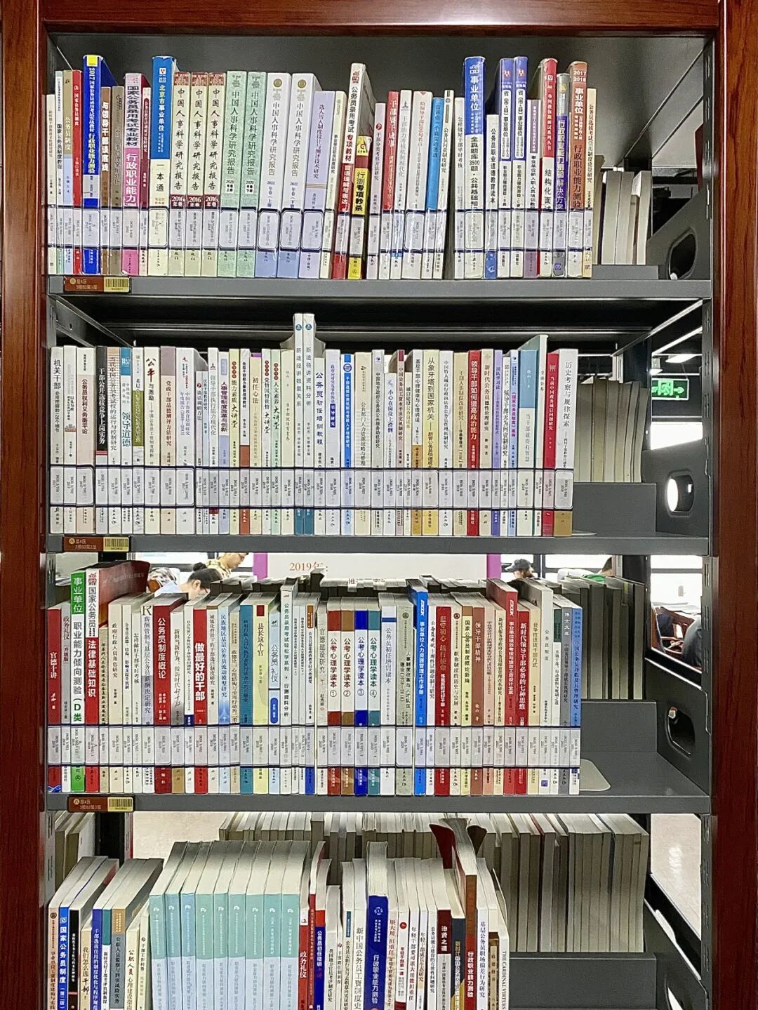首图(华威桥馆)B座八层政治、法律文献馆A区03排B3架上,几乎都是和考公相关的书籍,考生可以按需前往该书架查找自己想要的纸质书。