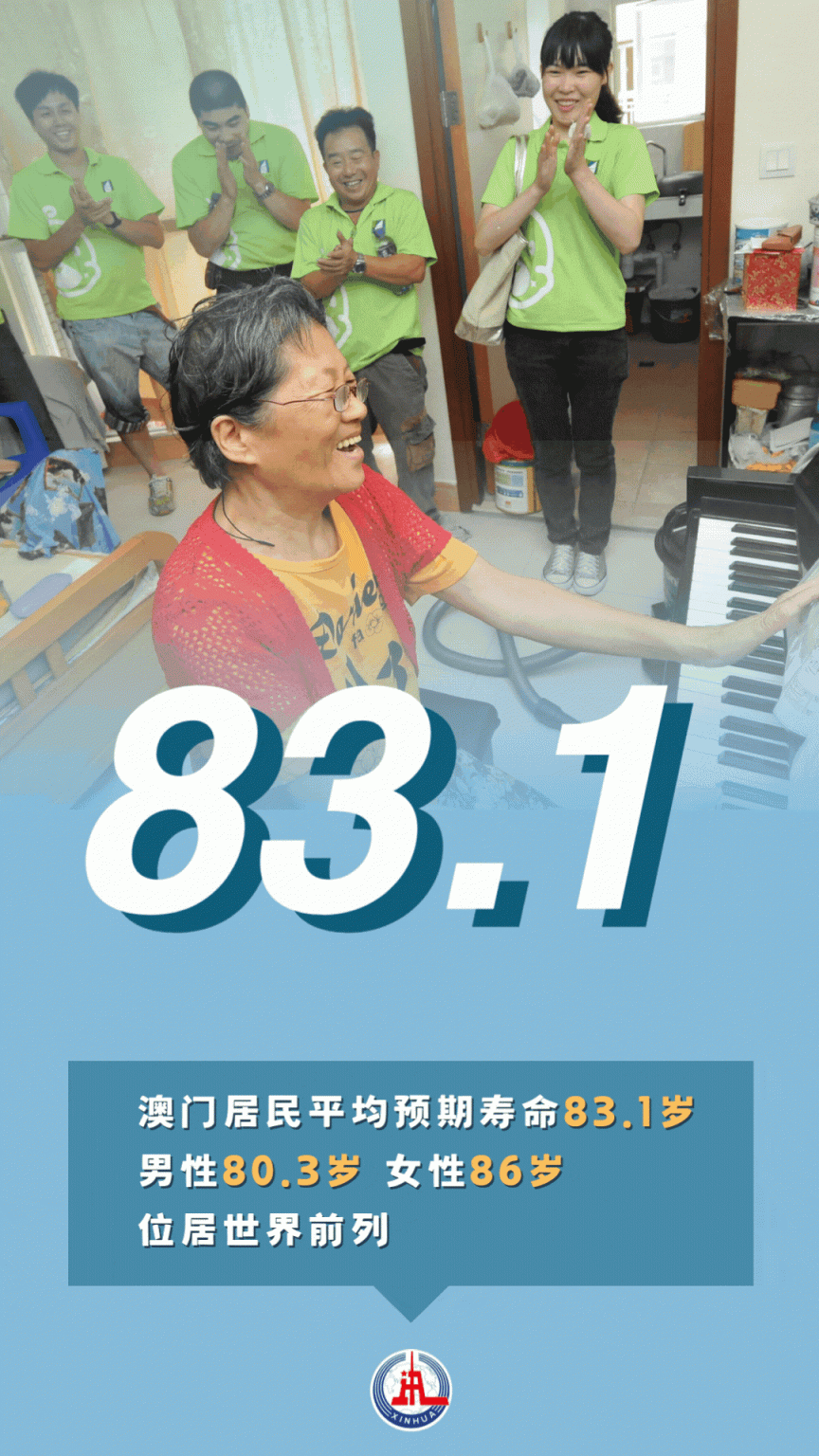 回归祖国以来,澳门建立了涵盖生命全周期、覆盖生活各领域的民生保障体系,医疗保障水平显著提升。澳门初级卫生保健体系被世界卫生组织评为“太平洋地区典范”。澳门居民平均预期寿命83.1岁,其中男性80.3岁、女性86岁,位居世界前列。