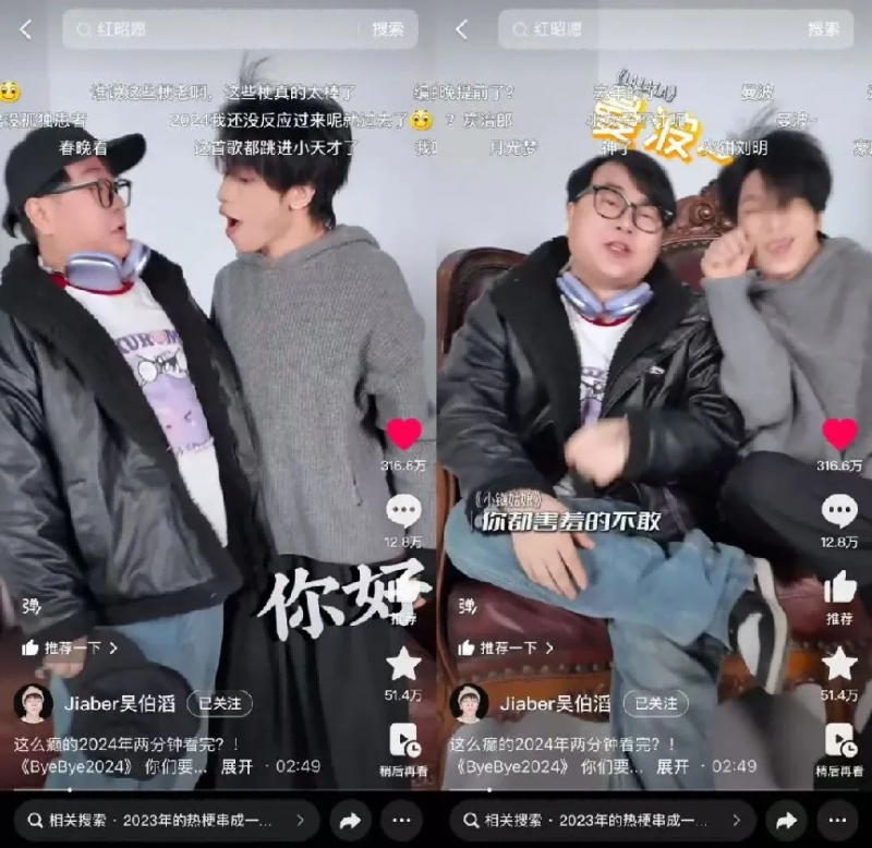 音乐赛道中,《ByeBye2024》的创作者@Jiaber吴伯滔 用两分钟的整活歌曲串联起2024的热梗 ,无论是passion、还是APT.等过去一年的洗脑热梗,都融入创作者的精巧编曲中,为用户带来观感上的惊喜感。