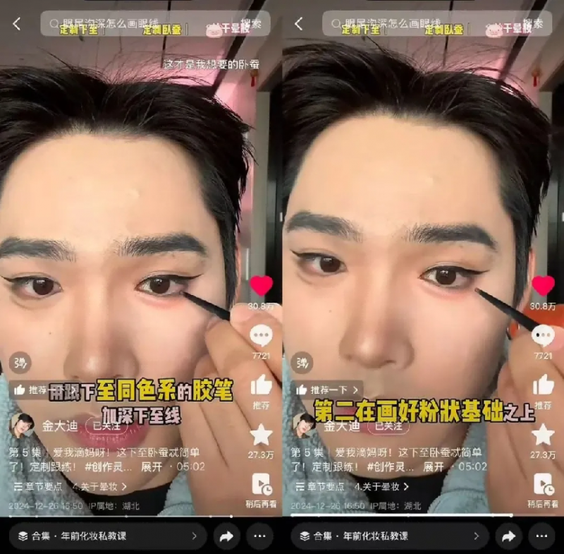 美妆创作者@金大迪 的「私教课」,则是以细致的教程,让美妆小白“有手就能学,轻松拿捏化妆”。