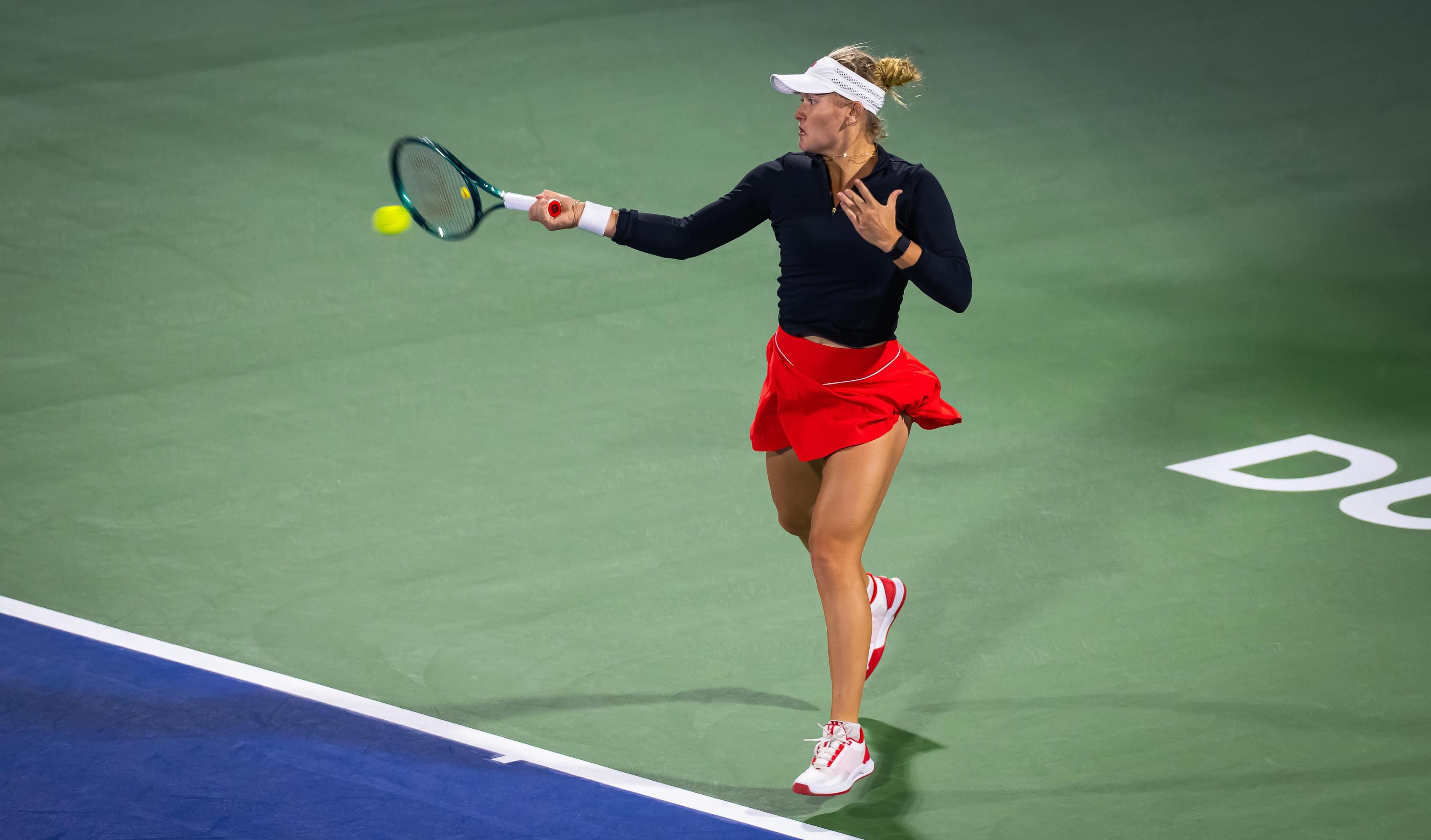 WTA1000迪拜站首轮,斯特恩斯淘汰贾巴尔晋级次轮,接下来将对阵7号种子郑钦文。