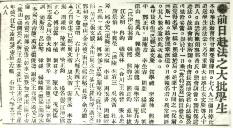 ↑赴法学生代表名册(巴南区档案馆馆藏)↑