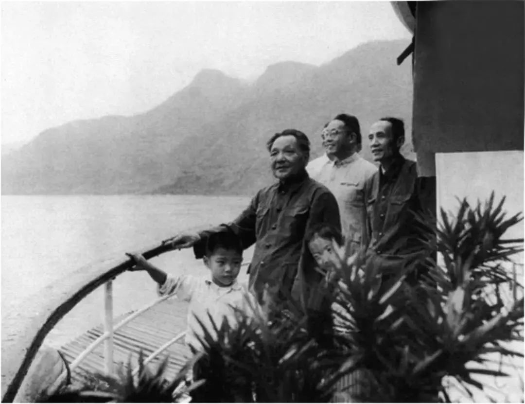 ↑1980年7月,邓小平视察途中观赏三峡美景↑