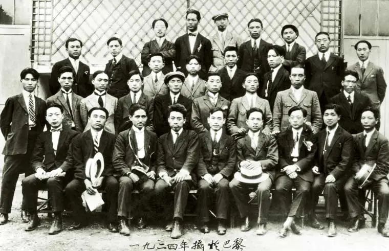 ↑1924年,邓小平出席中国社会主义青年团旅欧区第五次代表大会。后排右三为邓小平↑