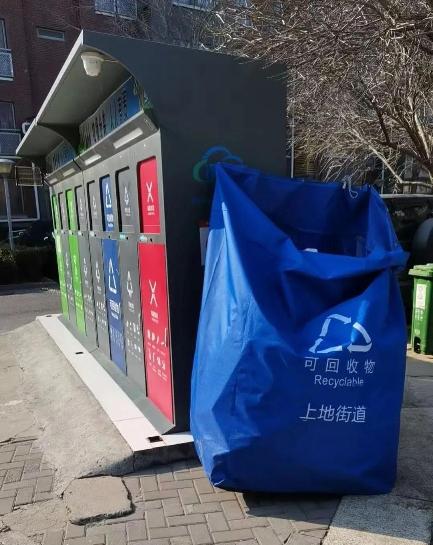 近日,住在海淀区上地街道的居民发现,在小区垃圾桶站旁,多了一个蓝色大口袋,这个口袋有啥用?原来,这是街道专门定制的可回收物收集袋。这个“收纳神器”正改变着居民的垃圾分类习惯。