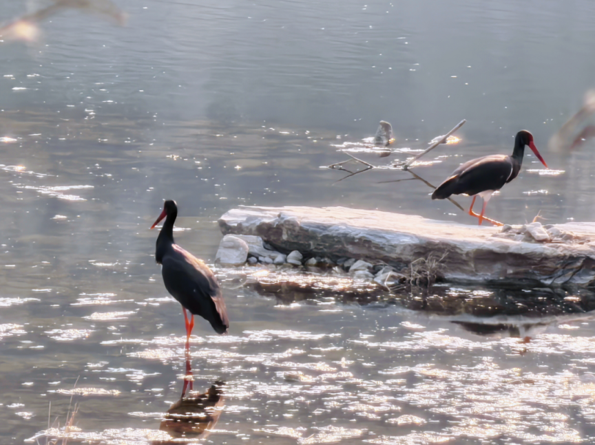 怀九河流域黑鹳觅食飞翔,不仅为春天的怀柔增添了灵动生机,更彰显了生态文明建设的深远价值。