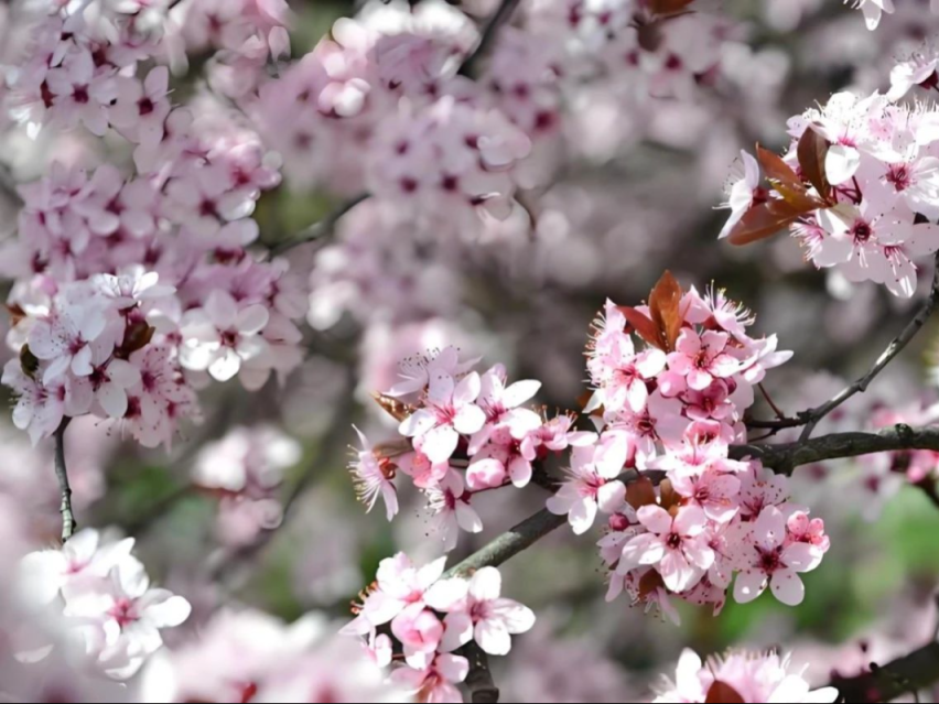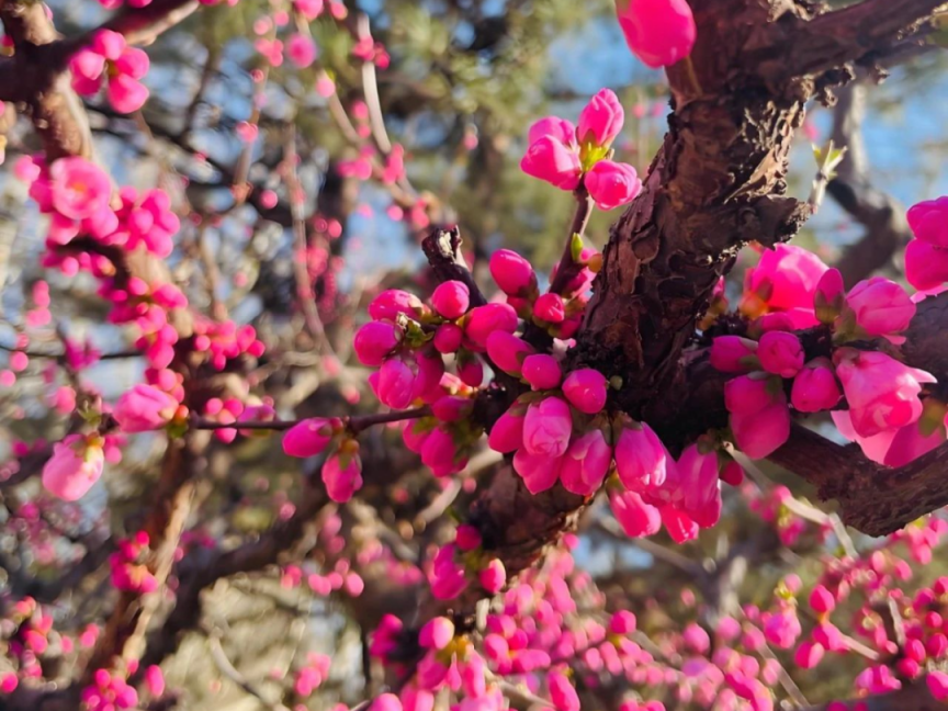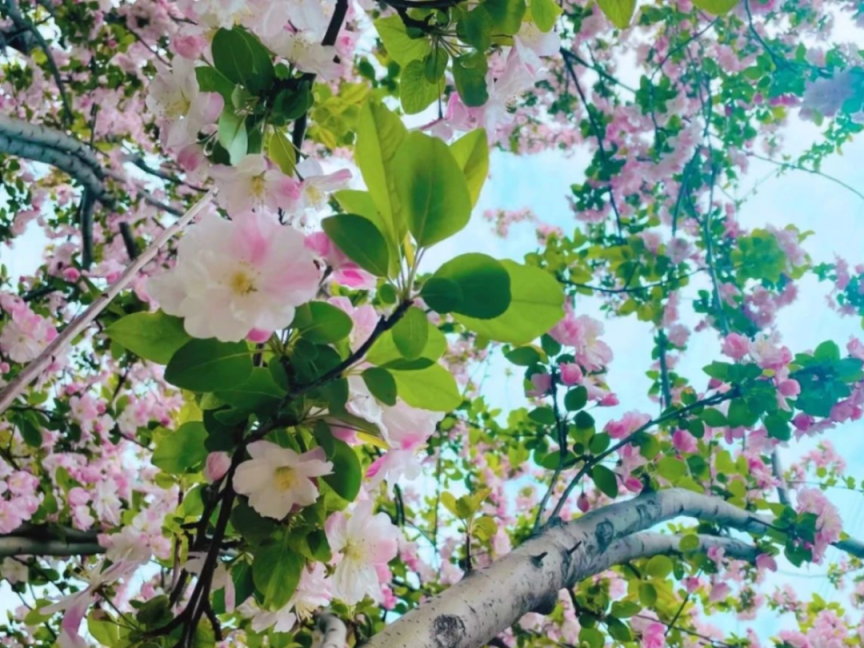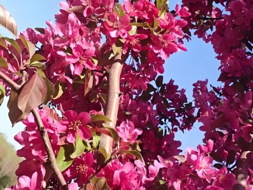 3月-4月的西红门九龙口休闲公园是海棠与紫叶李的舞台。海棠花层层叠叠,或红或粉,在枝头摇曳生姿;紫叶李的花朵小巧玲珑,洁白中透着淡淡的粉,与紫红色的叶子相互映衬,格外好看,漫步其中,仿佛置身于梦幻花境。