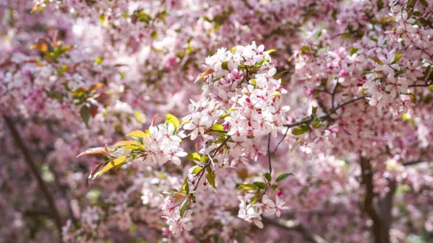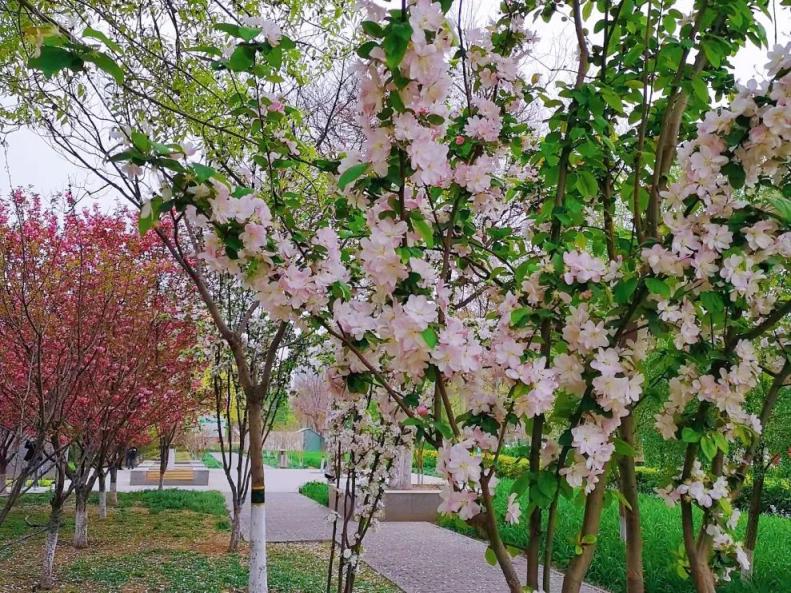 3月-5月,街心公园的碧桃、海棠、鸢尾、榆叶梅依次开放。人们在街头巷尾就能邂逅这别样的春日繁花。