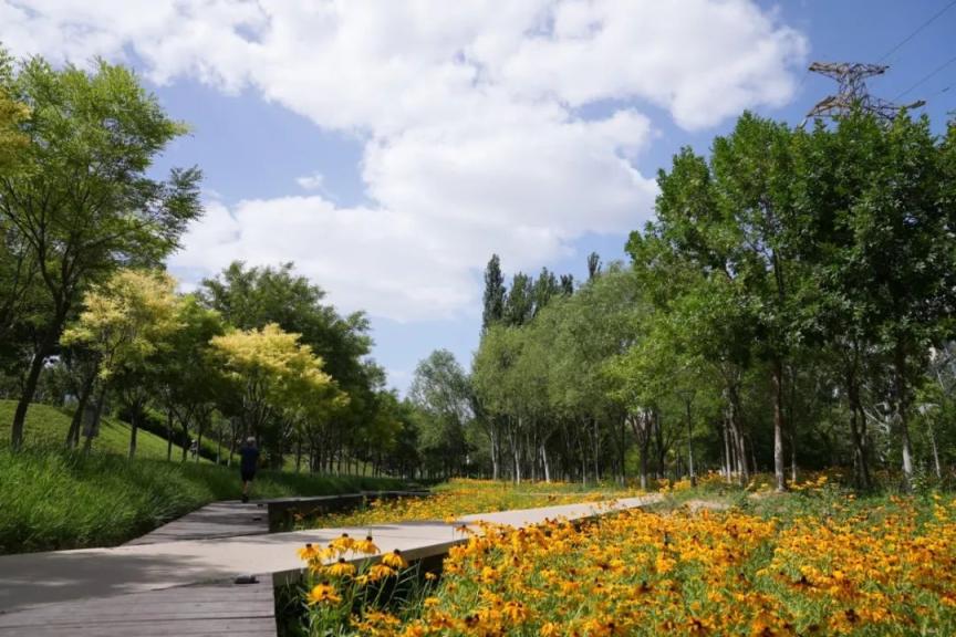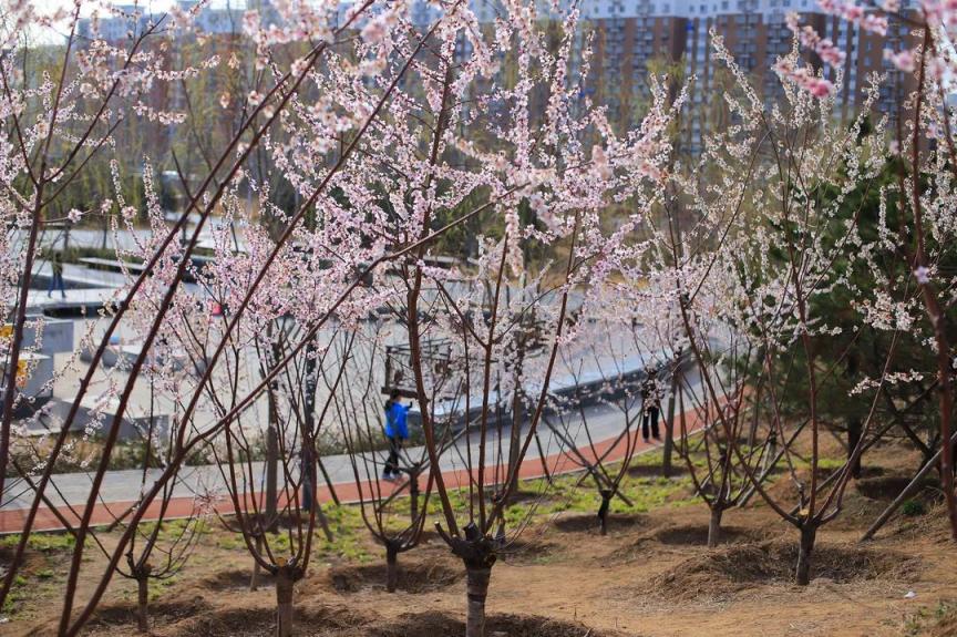 滨河运动公园的碧桃、山桃、海棠于3月-4月绽放。健身步道旁,海棠花如云似霞,粉白花瓣簇拥枝头,为慢跑者送上芬芳;广场边连翘肆意绽放,金黄小花点亮角落,与活力人群相得益彰,尽显春日生机。