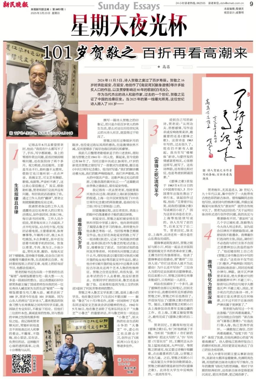 撰写一篇诗人贺敬之的印象记,若只是介绍百岁老人的养生生活,那么对这位历经世纪风云的大诗人而言,就显得过于轻浅了。