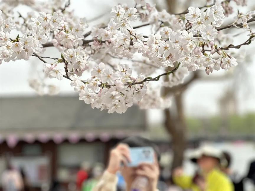 玉渊潭公园相关负责人介绍,随着全园赏樱格局的不断优化,游客在樱花园景区、南山观樱景区、樱珞花谷景区、玉渊春秋景区、中堤桥附近均有所分布,不少游客特别是亲子家庭选择泛舟湖上欣赏滨水樱花景观。