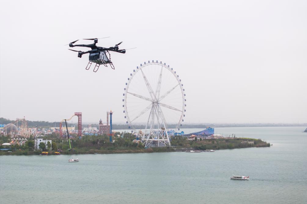 3月27日,小鹏汇天“陆地航母”湖南首飞仪式在湖南省常德市柳叶湖旅游度假区举行,模拟了跨湖面飞行的应用场景。