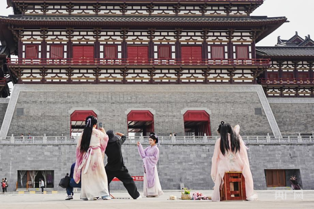 “从清晨拍到深夜已成常态。”应天门下正在拍摄的摄影师介绍,游客对妆造精细度要求日益提升,他笑称:“洛阳汉服妆造‘卷’得很,每位游客都能化身‘娘娘’‘小仙女’”。
