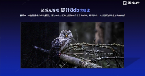 超感光降噪,信噪比提升8db。圆鸮AI ISP超感光降噪技术,基于自研的AI降噪算法模型,有效区分图像中的信号和噪声,精准降噪,在极低照度场景下的成像做到夜如白昼。