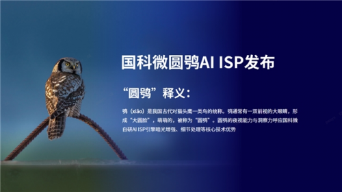 圆鸮命名,源于我国古代对猫头鹰一类鸟的统称“鸮”。猫头鹰拥有一双前视的大眼睛,形成独特的“大圆脸”,因其萌态被昵称为“圆鸮”。圆鸮拥有出色的夜视能力和敏锐的洞察力,呼应国科微自研新一代AI ISP引擎在暗光增强、细节捕捉等方面的核心技术优势。