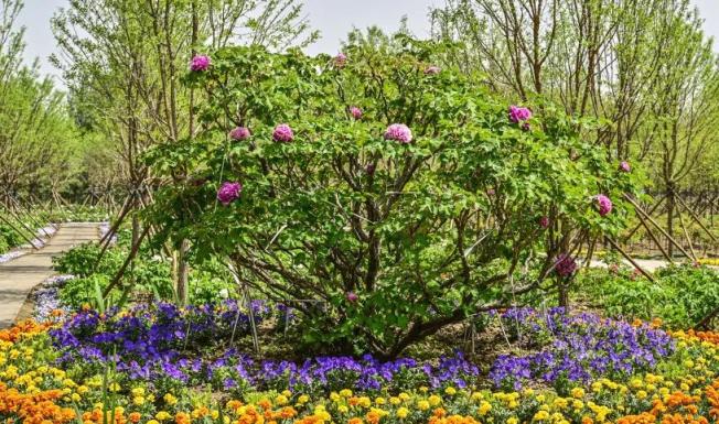 为提升游客体验,运河牡丹园用心营造景观,将园内原有杨树替换为玉兰、流苏、合欢等五种开花乔灌木,既解决飞絮问题,又构建起四季有景的复合花境。