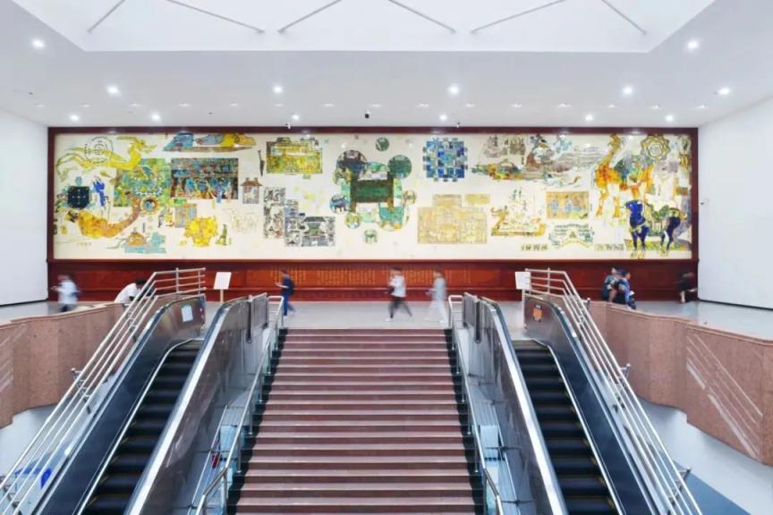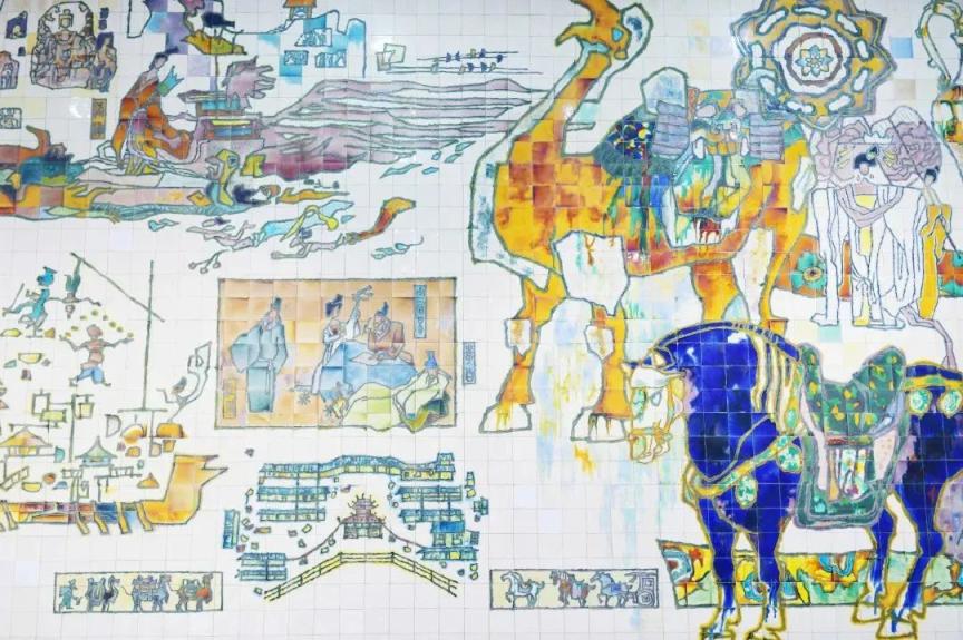在洛阳站二楼的候车厅,一幅巨型唐三彩壁画《天中春秋》引人注目。旅客可以通过扫描壁画下方引导牌上的二维码,一键获取壁画中的故事,了解地方文化特色。
