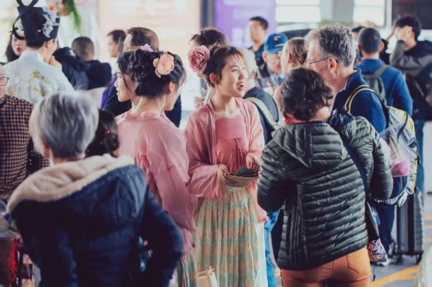 该站还积极与本市高校合作,每日安排2名英语专业大学生作为青年志愿者,在“天香”服务台为外籍旅客答疑解惑,展现千年古都的国际风范。