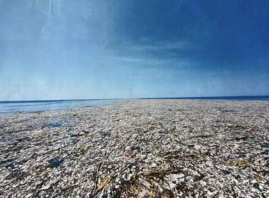 说实话,刚看到这条推文的时候,心里还是咯噔一下,好家伙,海上垃圾密密麻麻,看了让人触目惊心。