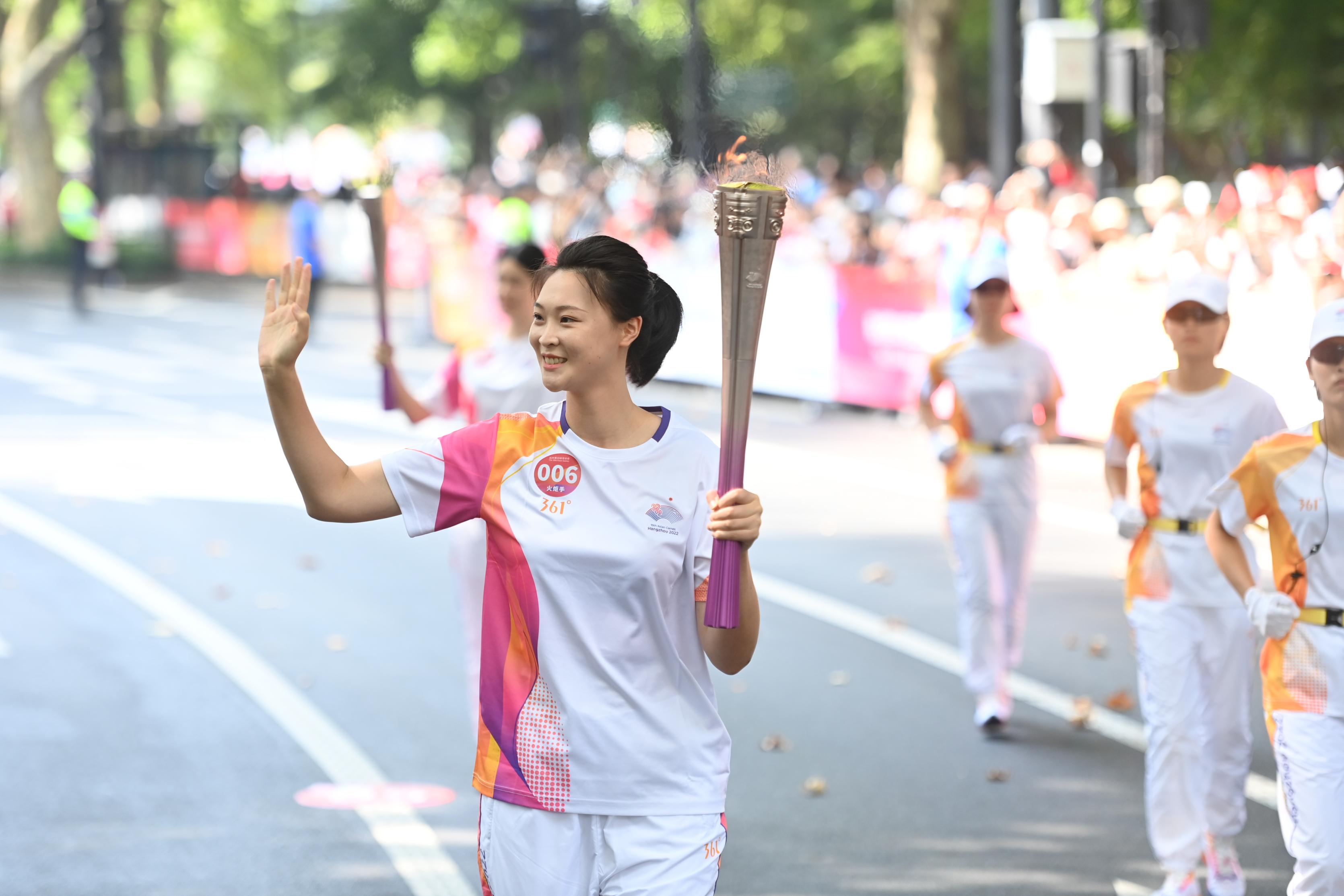 惠若琪在杭州亚运会火炬传递中。新华社记者 黄宗治 摄