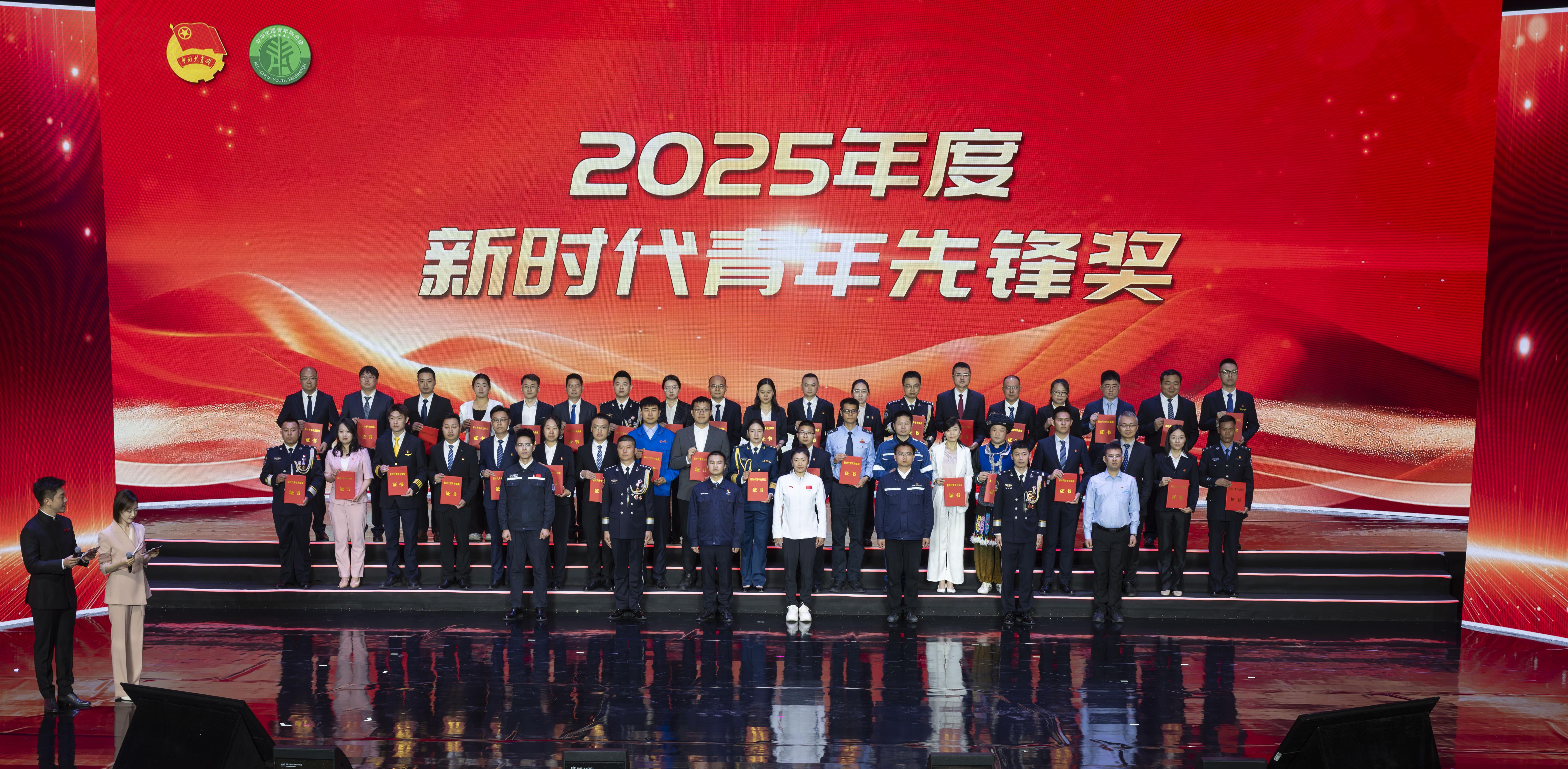 4月30日,2025年度新时代青年先锋奖获奖者在颁奖活动上合影。新华社记者 才扬 摄