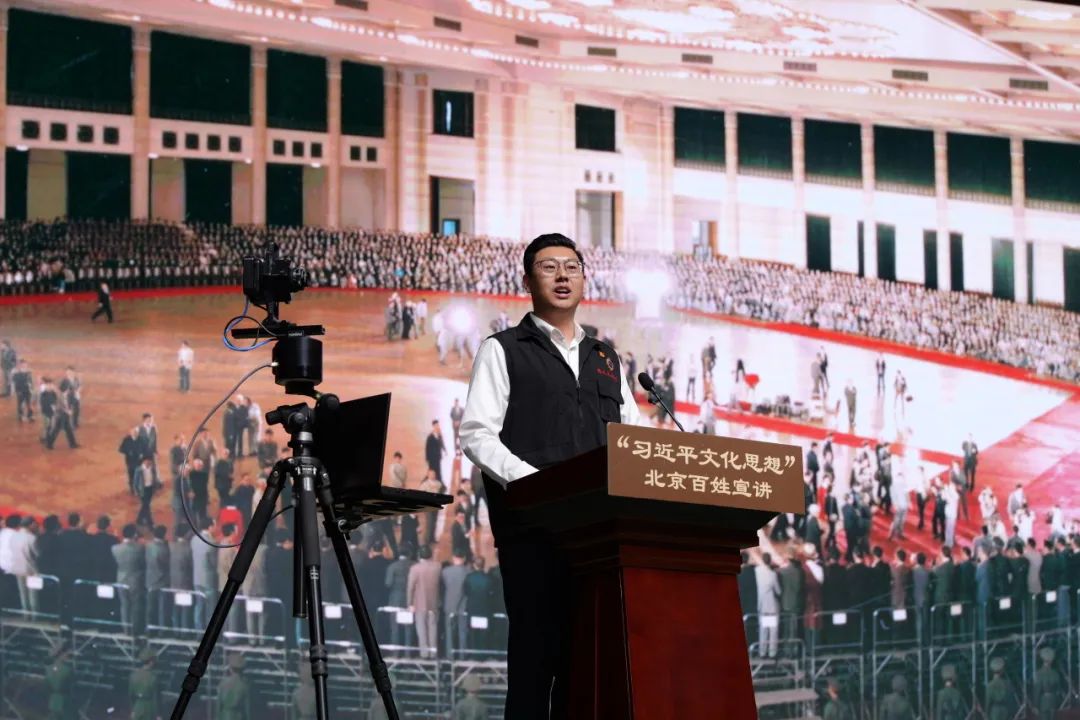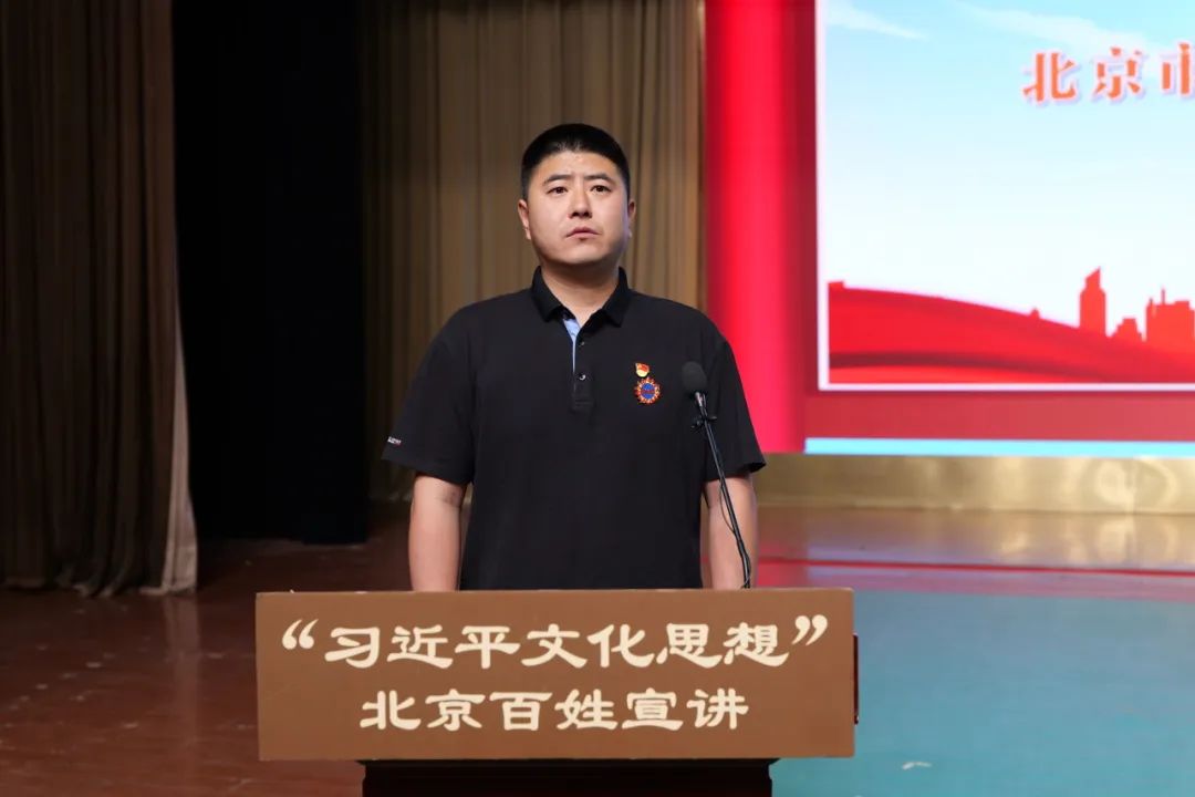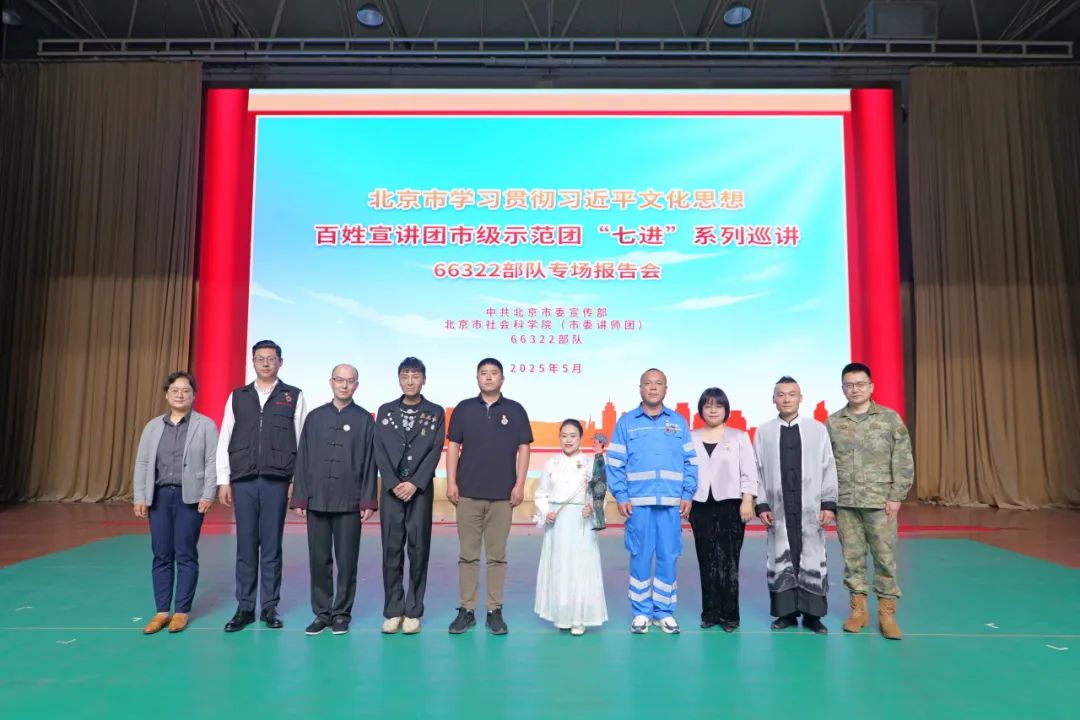 5月23日上午,北京市学习贯彻习近平文化思想百姓宣讲团市级示范团“七进”系列巡讲专场报告会在66322部队文化礼堂举行。