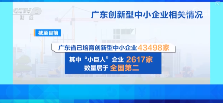 截至目前,广东省已培育创新型中小企业43498家、专精特新“小巨人”企业2617家,数量居于全国第二。广东正让更多科技创新的“种子”长成参天大树。